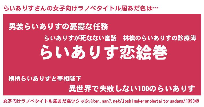 | ヘコむあだ名 | 『らいありす(苦笑)』『らいお』 |