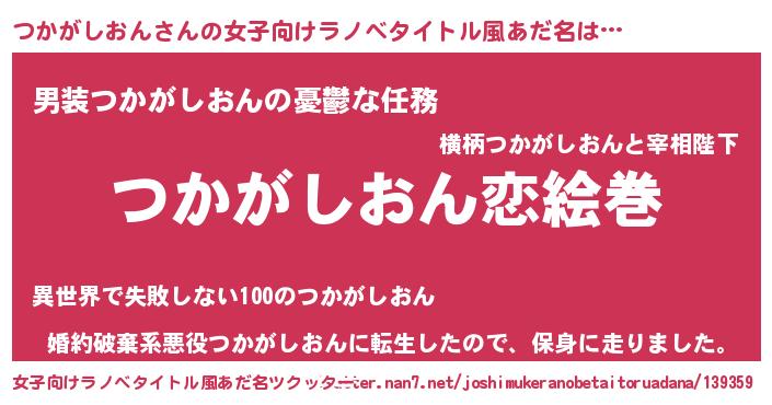 | ヘコむあだ名 | 『つかがしおん(笑)』『つかもー』 |