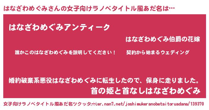 | 胡散臭い通販商品みたいなあだ名 | 『億万長者になれる水晶球…その名も「はなざわめぐみ」』 |