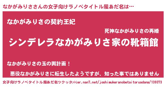 | 伝説のあだ名 | 『古より伝わる吟遊詩人なかがみりさ』 |