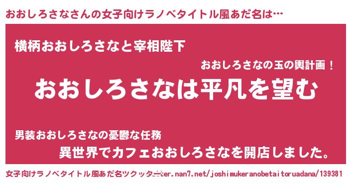 | 胡散臭い通販商品みたいなあだ名 | 『信頼と実績のペンダント…その名も「おおしろさな」』 |