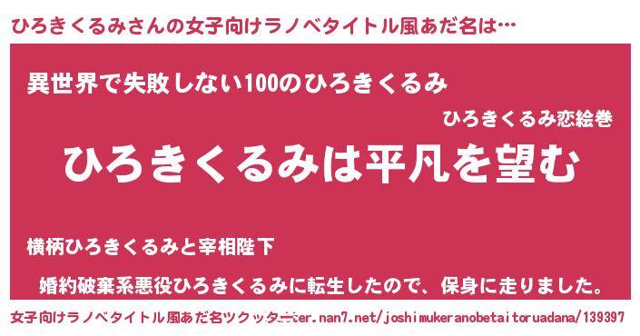 | 男性向けラノベタイトル風あだ名 | 『ダンジョンにひろきくるみを求めるのは間違っているだろうか』 |