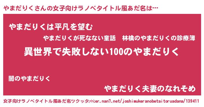 | ヘコむあだ名 | 『やまだりく(笑)』『やまお』 |