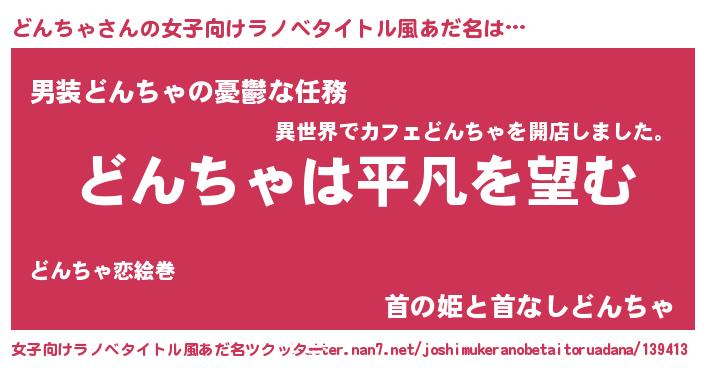 | 男性向けラノベタイトル風あだ名 | 『ダンジョンにどんちゃを求めるのは間違っているだろうか』 |