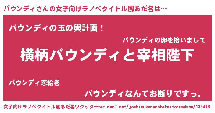 | 意味不明あだ名 | 『ニラ科バウンディ属』『自称バウンディ』 |
