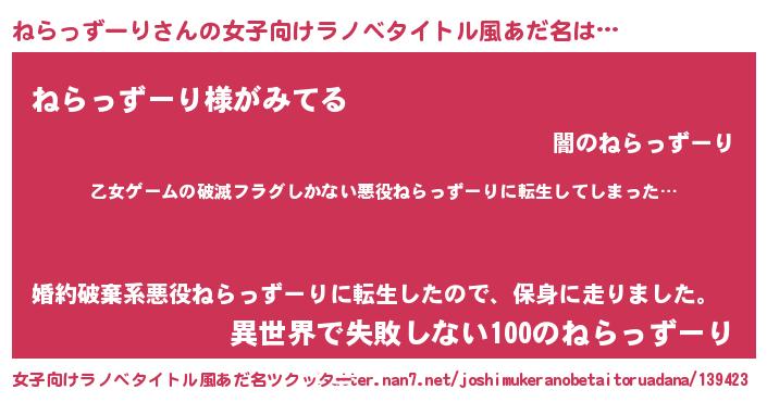 | ヘコむあだ名 | 『ねらを』『ねらっずーり(小並感)』 |