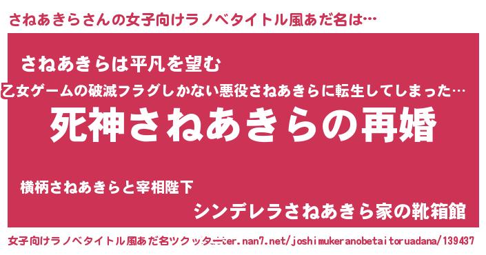 | 男性向けラノベタイトル風あだ名 | 『ノーゲーム・ノーサネアキラ』 |