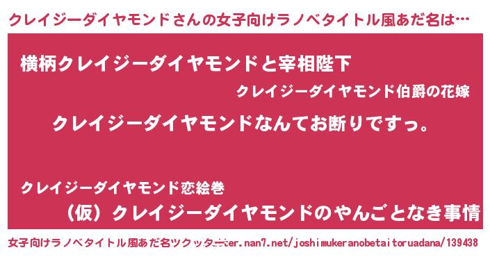 | ヒーロー風カッコイイあだ名 | 『ウルトラ戦士クレイジーダイヤモンド』 |