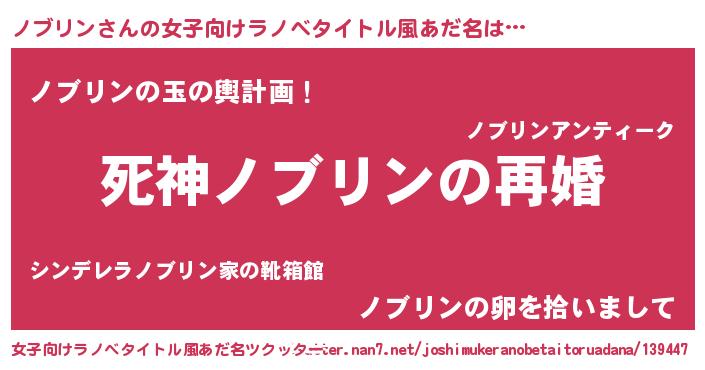 | 男性向けラノベタイトル風あだ名 | 『ノーゲーム・ノーノブリン』 |