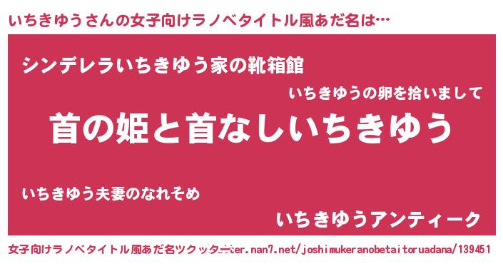 | 意味不明あだ名 | 『自称いちきゆう』『ペロリンいちきゆう』 |