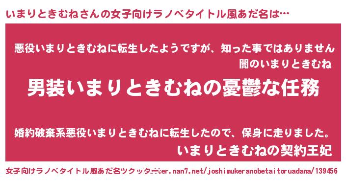 | 男性向けラノベタイトル風あだ名 | 『うちのいまりときむねが世界を掌握している!』 |