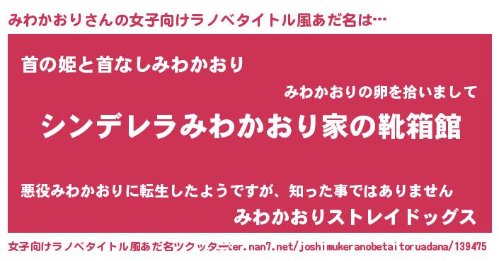 | 欧米人風あだ名 | 『みわかおり・ステッグマイヤー』 |
