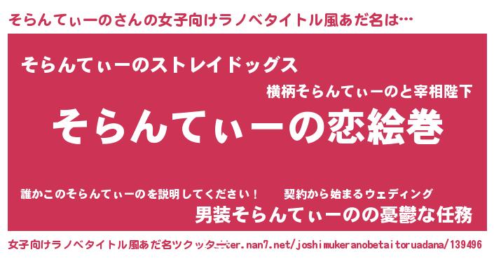 | 男性向けラノベタイトル風あだ名 | 『ノーゲーム・ノーソランティーノ』 |