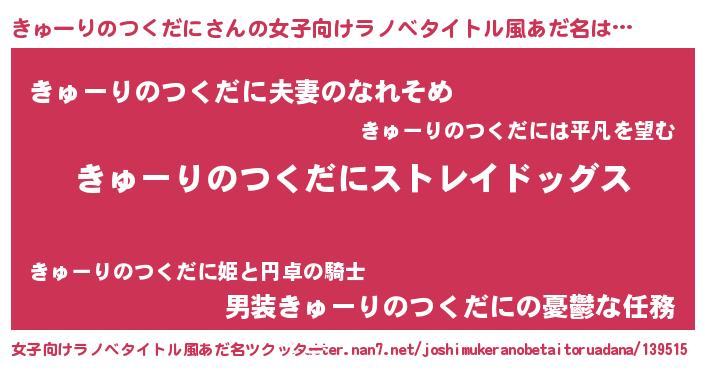 | 恥ずかしいあだ名 | 『キューリノツクダニデラックス』 |