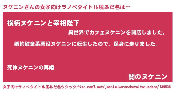 | 胡散臭い通販商品みたいなあだ名 | 『テレビで話題のアガリクス…その名も「ヌケニン」』 |