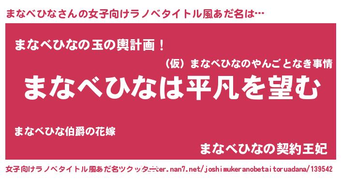 | 胡散臭い通販商品みたいなあだ名 | 『信頼と実績のペンダント…その名も「まなべひな」』 |