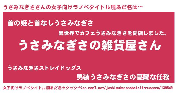 | 意味不明あだ名 | 『うさみなぎさフォーエバー』 |