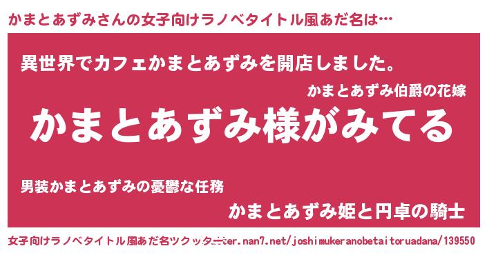 | 意味不明あだ名 | 『とにかく怪しいかまとあずみ』 |