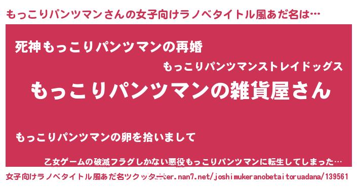 | 男性向けラノベタイトル風あだ名 | 『やはりもっこりパンツマンの青春ラブコメはまちがっている 』 |