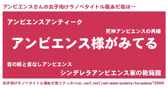 | 男性向けラノベタイトル風あだ名 | 『アンビエンスの嫁は女の子じゃないと思った?』 |