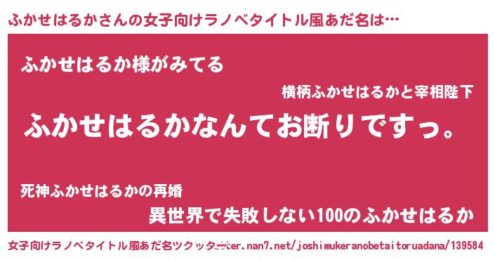| 男性向けラノベタイトル風あだ名 | 『魔法科高校のふかせはるか』 |