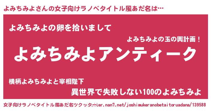 | 意味不明あだ名 | 『自称よみちみよ』『永久保存よみちみよ』 |