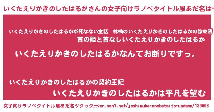| 肩書あだ名 | 『いくたえりかきのしたはるか閣下』 |