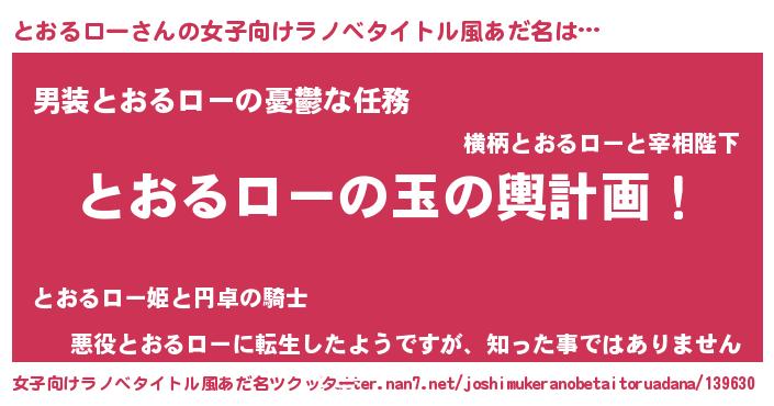 | 男性向けラノベタイトル風あだ名 | 『転生したらとおるローだった件』 |