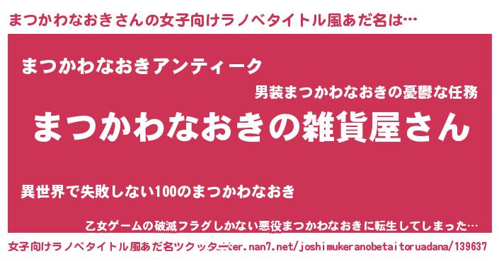 | 男性向けラノベタイトル風あだ名 | 『やはりまつかわなおきの青春ラブコメはまちがっている 』 |