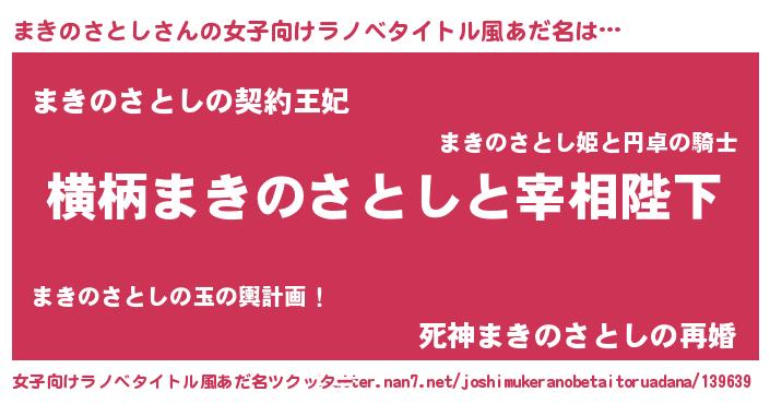 | 男性向けラノベタイトル風あだ名 | 『まきのさとしに滅ぼされるだけの簡単なお仕事です』 |