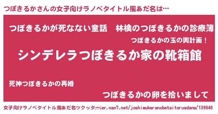 | 男性向けラノベタイトル風あだ名 | 『緋弾のツボキルカ』 |