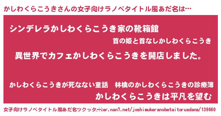 | ヘコむあだ名 | 『かしわくらこうき(笑)』『かしお』 |