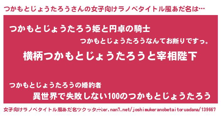 | 胡散臭い通販商品みたいなあだ名 | 『億万長者になれるブレスレット…その名も「つかもとじょうたろう」』 |