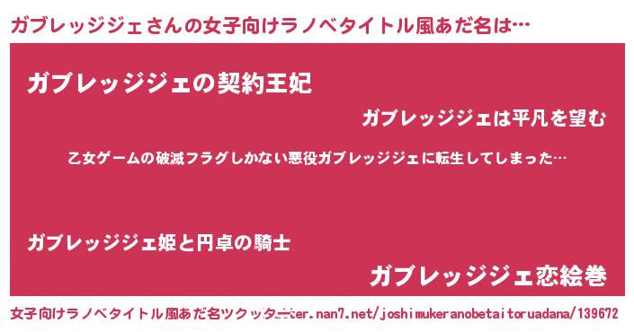 | 意味不明あだ名 | 『住所不定無職ガブレッジジェ(4歳)』 |