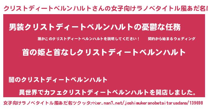 | 胡散臭い通販商品みたいなあだ名 | 『来世でも幸せになれる水素水…その名も「クリストディートベルンハルト」』 |