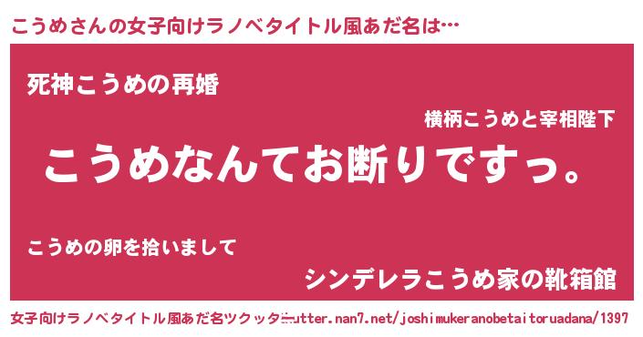 | 男性向けラノベタイトル風あだ名 | 『魔法科高校のこうめ』『緋弾のコウメ』 |