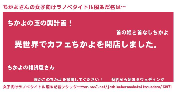 | 男性向けラノベタイトル風あだ名 | 『誰もが恐れるあのちかよが、ぼくの専属メイドになるようです。』 |
