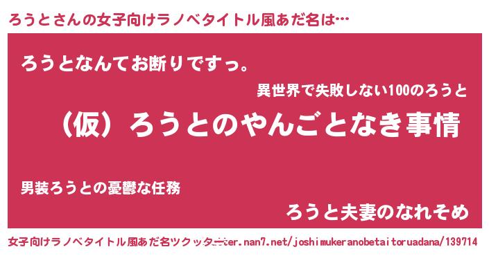 | 男性向けラノベタイトル風あだ名 | 『ろうとの憂鬱』『魔法科高校のろうと』 |