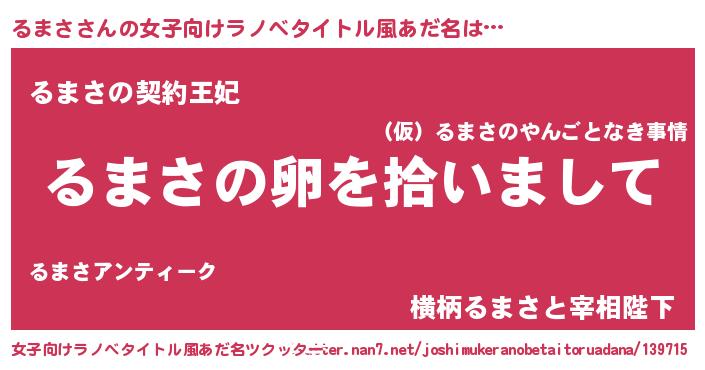 | ヘコむあだ名 | 『るまっちょ』『るまさ(遠い目)』 |