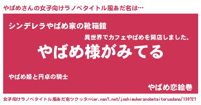 | 男性向けラノベタイトル風あだ名 | 『やばめの嫁は女の子じゃないと思った?』 |
