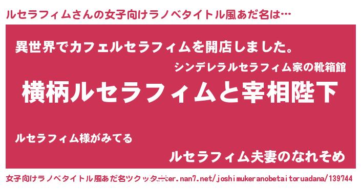 | 意味不明あだ名 | 『永久保存ルセラフィム』 |