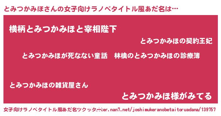 | 意味不明あだ名 | 『住所不定無職とみつかみほ(74歳)』 |