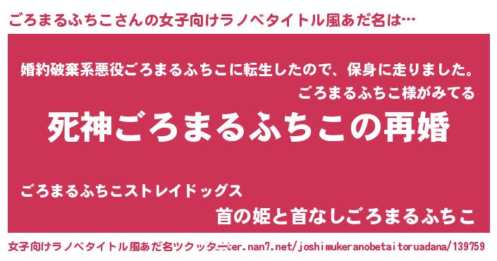 | 男性向けラノベタイトル風あだ名 | 『ノーゲーム・ノーゴロマルフチコ』 |