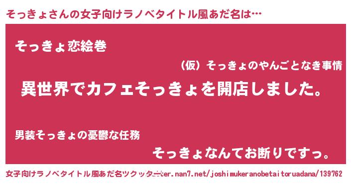 | 意味不明あだ名 | 『永久保存そっきょ』『自称そっきょ』 |