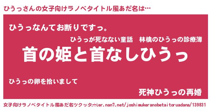 | ヘコむあだ名 | 『ひうっちょ』『ひうもー』 |