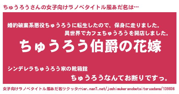 | 意味不明あだ名 | 『ちゅうろうフォーエバー』 |