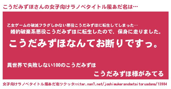 | 肩書あだ名 | 『こうだみずほ総統』『こうだみずほ教官』 |