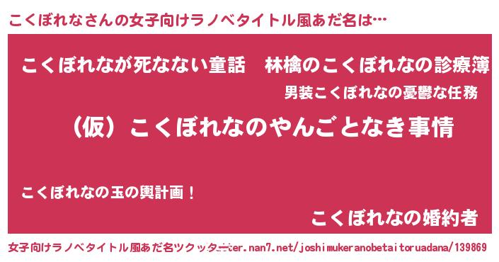| 恥ずかしいあだ名 | 『プリティーこくぼれな』『こくっちょ』 |