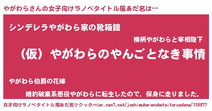 | 男性向けラノベタイトル風あだ名 | 『やがわらの憂鬱』『緋弾のヤガワラ』 |
