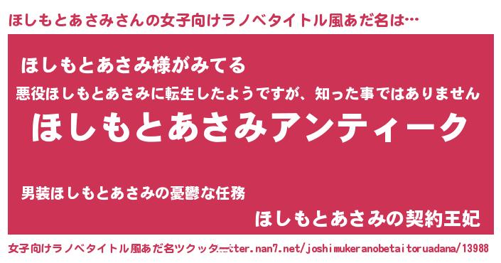 | 男性向けラノベタイトル風あだ名 | 『魔法科高校のほしもとあさみ』 |